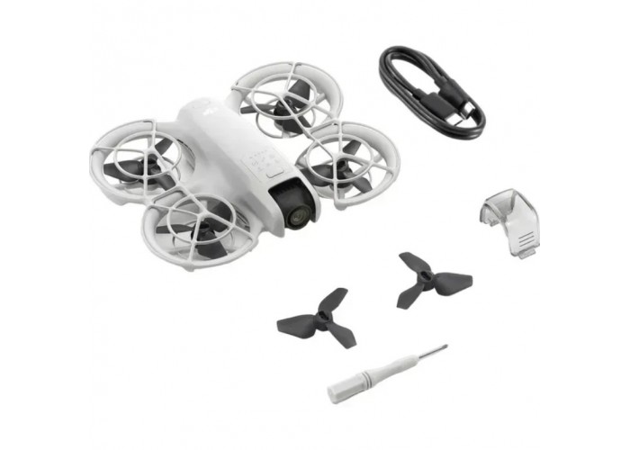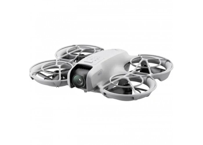DJI Neo — це надкомпактний квадрокоптер вагою 135 грамів, розроблений для швидкого запуску та мобільної зйомки. Пристрій має інтегрований захист пропелерів, що дозволяє безпечно злітати та приземлятися безпосередньо з долоні користувача. Керування може здійснюватися через мобільний додаток DJI Fly, пульти дистанційного керування або за допомогою голосових команд та жестів.
