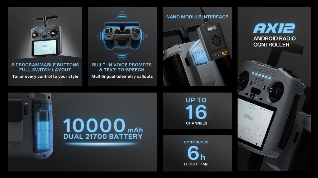 RadioMaster AX12 — це універсальний інструмент для пілотів, кінематографістів та розробників. Поєднання відкритої екосистеми Android із професійним залізом RadioMaster робить цей пульт одним із найбільш перспективних рішень на ринку у 2026 році.
