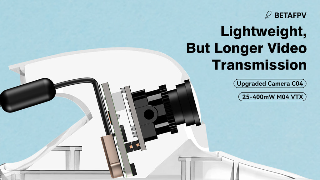 - Включає M04 400mW VTX, C04 FPV камеру (на основі Caddx Nano Ant Camera або Runcam Nano 4) і 2*BT2.0 450mAh 1S 30CБатарея для довшої радіо- та відеопередачі та тривалості польоту, безщітковий квадрокоптер Cetus X дозволяє новачкам отримати більше досягнень у польоті FPV.